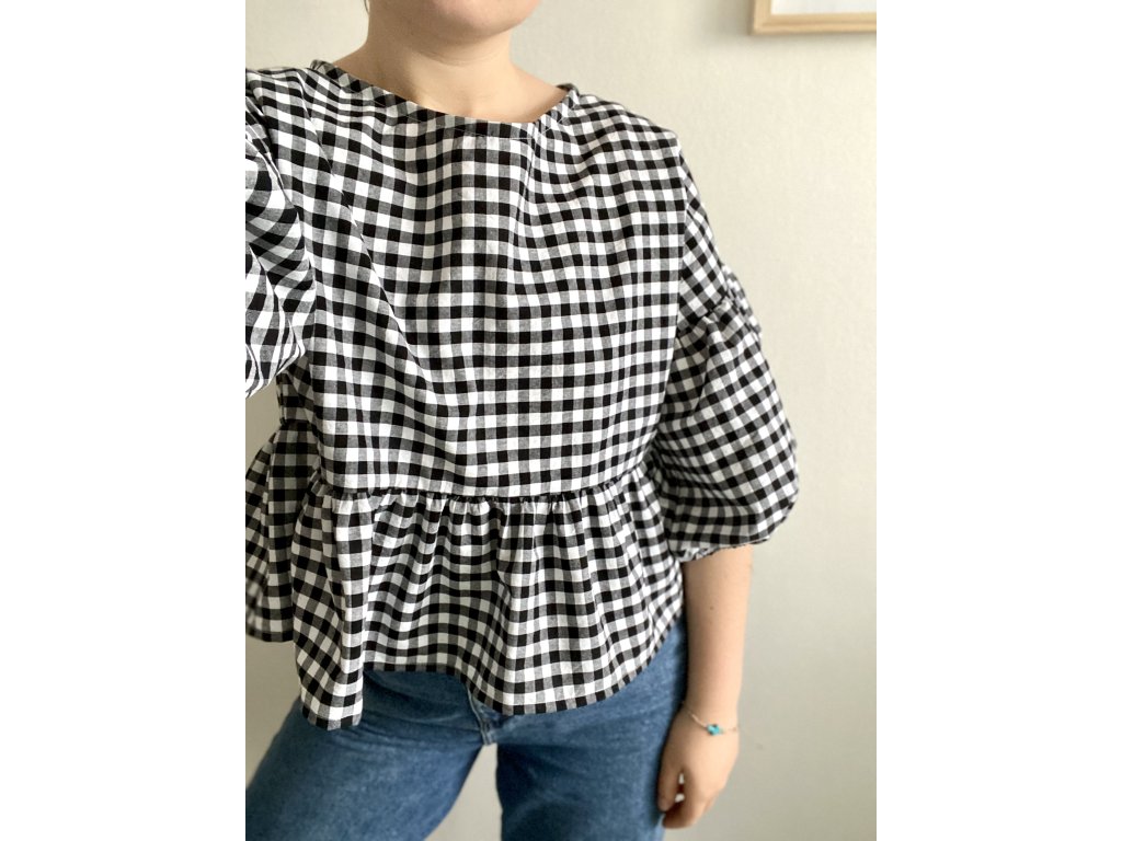 Top voľného strihu, s mierne padnutým ramenami a bohatými rukávmi je kúskom, ktorý v outfite určite neostane nepovšimnutý.